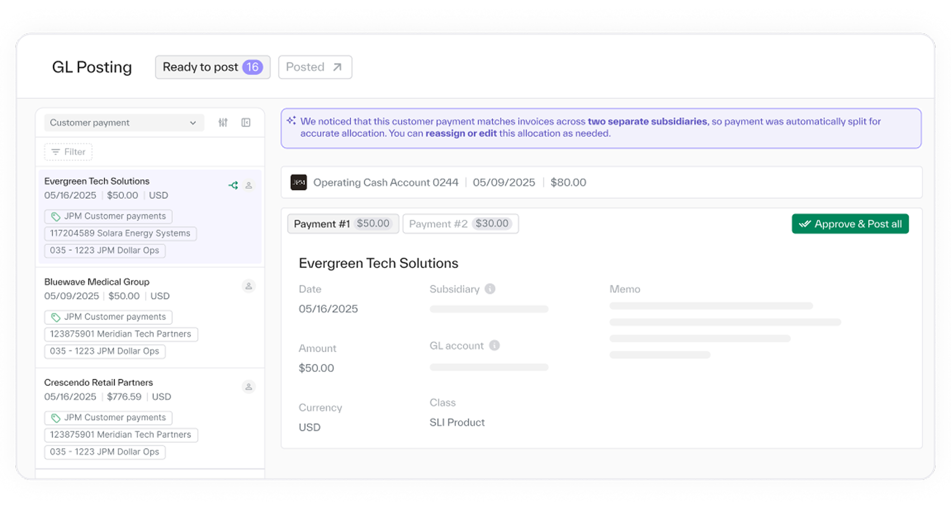 Book a DemoDon’t let undeposited funds pile up. Apply payments in real-time and enable instant allocations with no manual cleanup.